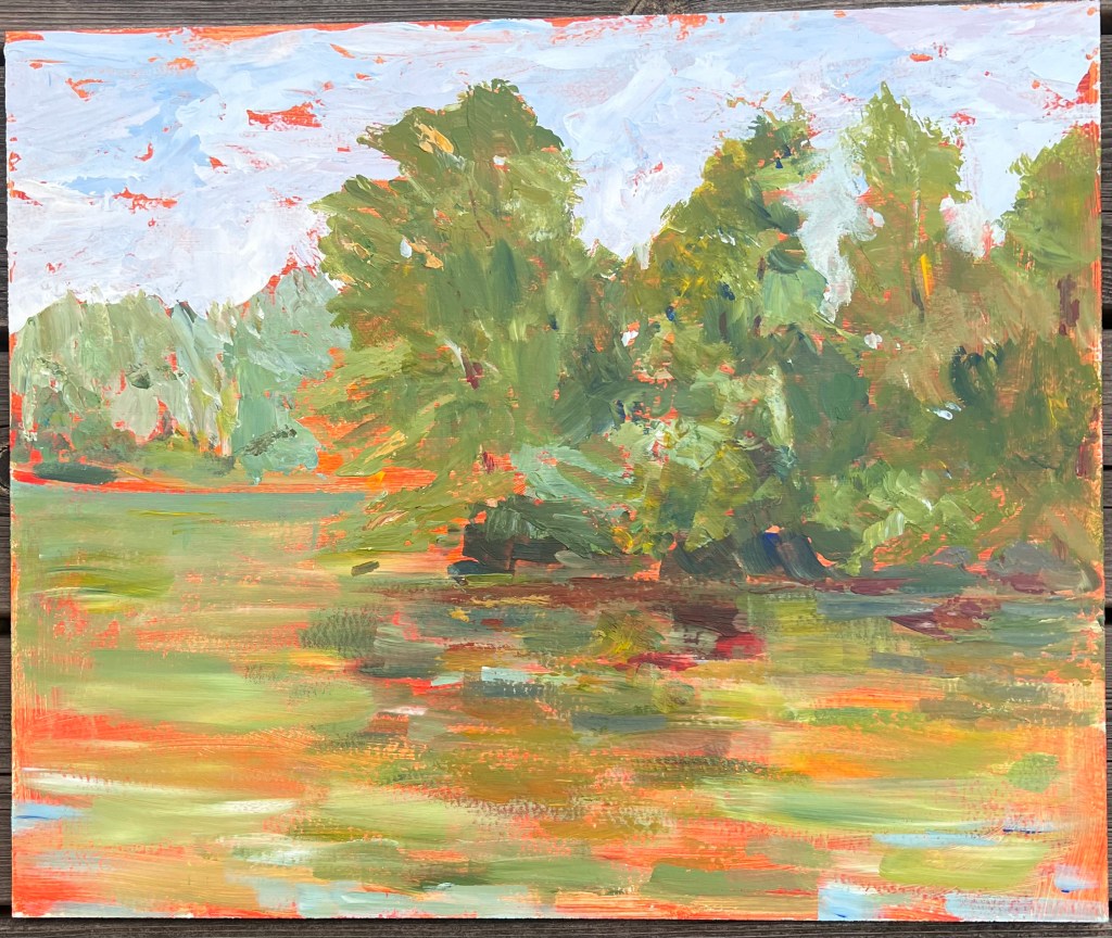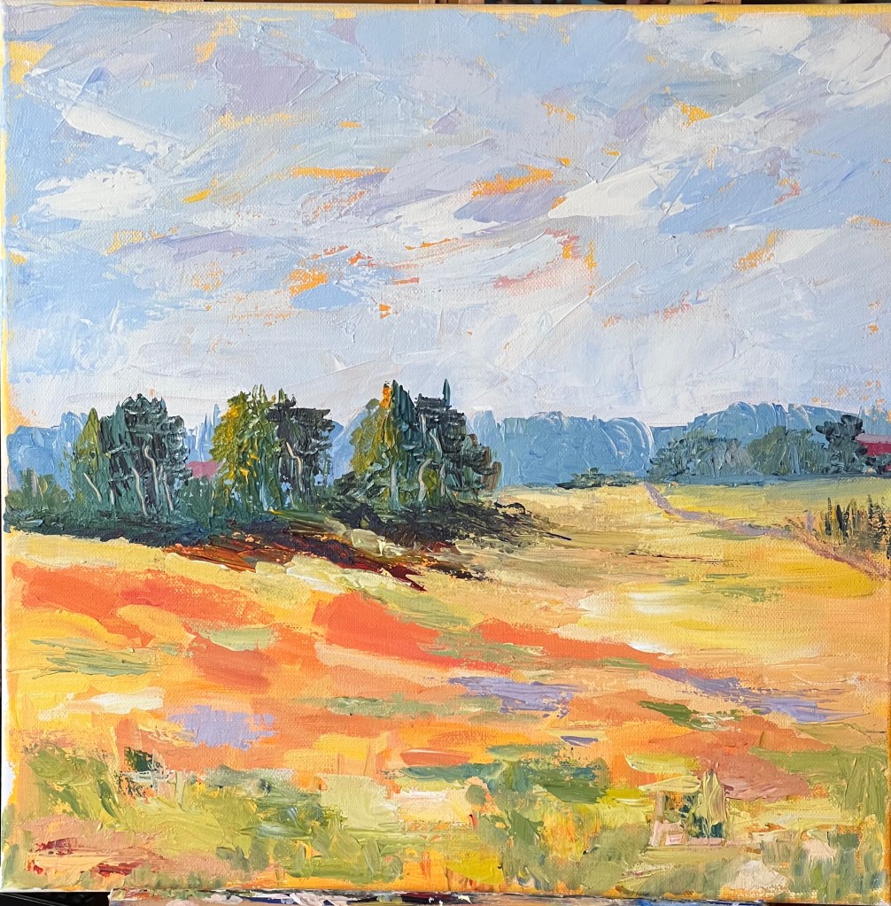 När jag målar låter jag inte människan stå i centrum – istället söker jag relationer där naturen, färgen och materialen får lika mycket röst som jag själv. Jag vill att betraktaren ska känna sig som en del av samma väv som landskapet, snarare än som en åskådare utanför.